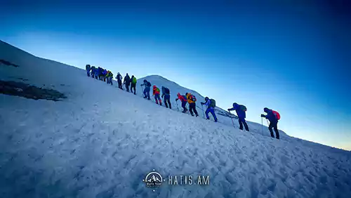 At midnight, around 01:00, we start the ascent. After about 6-7 hours of walking, we reach the top of the dream. During the ascent, the temperature ranges from 0 to -20 degrees. After reaching the top, you will have no shortage of emotions and excitement. Until now, you looked at Mount Ararat with a dreamy gaze from Armenia, and now you are on top of Mount Ararat. In case of favorable weather conditions, we will see Armenia from the top of Mount Ararat, including Mount Aragats, the Armenian highlands, Nakhichevan, a part of the territories of Persia and Turkey. It's time to go down. After reaching the second camp of Mount Ararat and resting for 1-2 hours, we walk to the first camp.