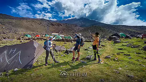 Close your eyes for a moment and imagine. you are standing at the foot of Mount Ararat. you are standing at the foot of the biblical mountain of the historical homeland. From there we start the ascent. From an altitude of 2200 meters, we move to the base camp of Mount Ararat, located at an altitude of 3200 meters. During the entire ascent, heavy items, property and spare gear are transported by horses. After 5-6 hours of walking, reaching the first camp of Mount Ararat, we will settle in tents and rest. The overnight stay in a tent is one of the most memorable moments of the participants during the ascent of Mount Ararat.