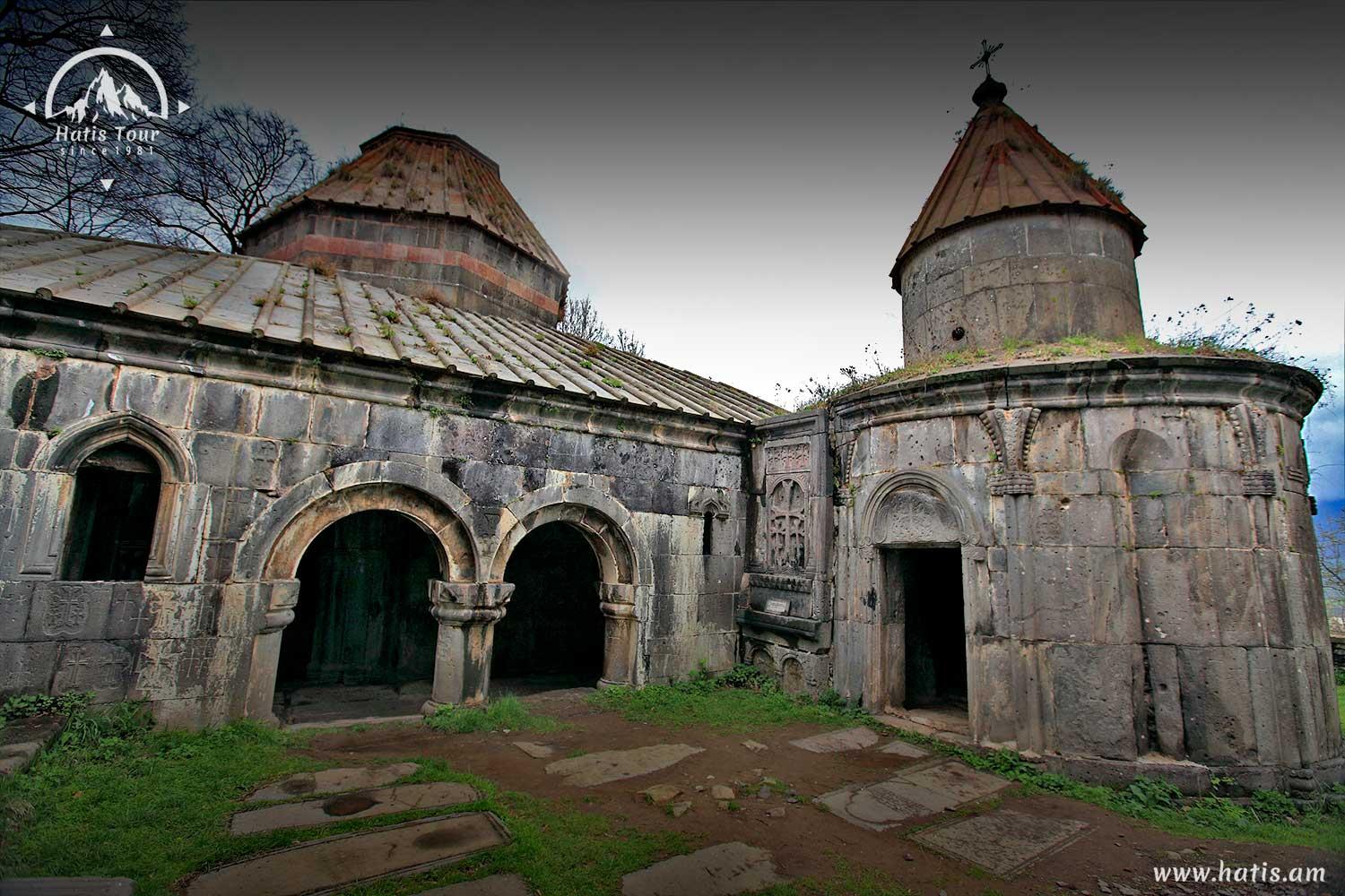 Համալիրը հիմնվել է 966 թ., հայոց թագավոր Աշոտ Գ. Ողորմածի աջակցությամբ: Դարձել է Կյուրիկյանների վարչական կենտրոնն ու տոհմական դամաբարանը, ինչպես նաև թագավորության հոգևոր առաջնորդանիստը: Եղել է միջնադարյան հոգևոր ու գիտակրթական խոշոր կենտրոն: Սանահին անունը ստացել է Հաղպատի վանքի կառուցումից հետո («սա քան զնա հին» իմաստով): Վանքը հայ միջնադարյան ճարտարապետության աչքի ընկնող կառույցներից է և նշանակալից դեր է կատարել հայ հոգևոր ու մշակութային կյանքում: Համալիրը բաղկացած է 10-12-րդ դարերում վերակառուցված պաշտամունքային և քաղաքացիական շինություններից՝ երեք եկեղեցիներից, գրատուն-մատենադարանից, գավթից, նախագավթից, զանգակատնից, դամբարաններից, հոգևոր դպրոցի և գրատան սրահներից: Հուշարձանախմբից դուրս գտնվում են վանքի աղբյուրը, մատուռներ, խաչքարեր և գեղաքանդակ խաչքարերով մի շարք փոքր եկեղեցիներ, որոնք սփռված են թաղամասի տարածքում ու նրանից դուրս, ինչպես նաև` Սանահինի հանրահայտ կամուրջը: